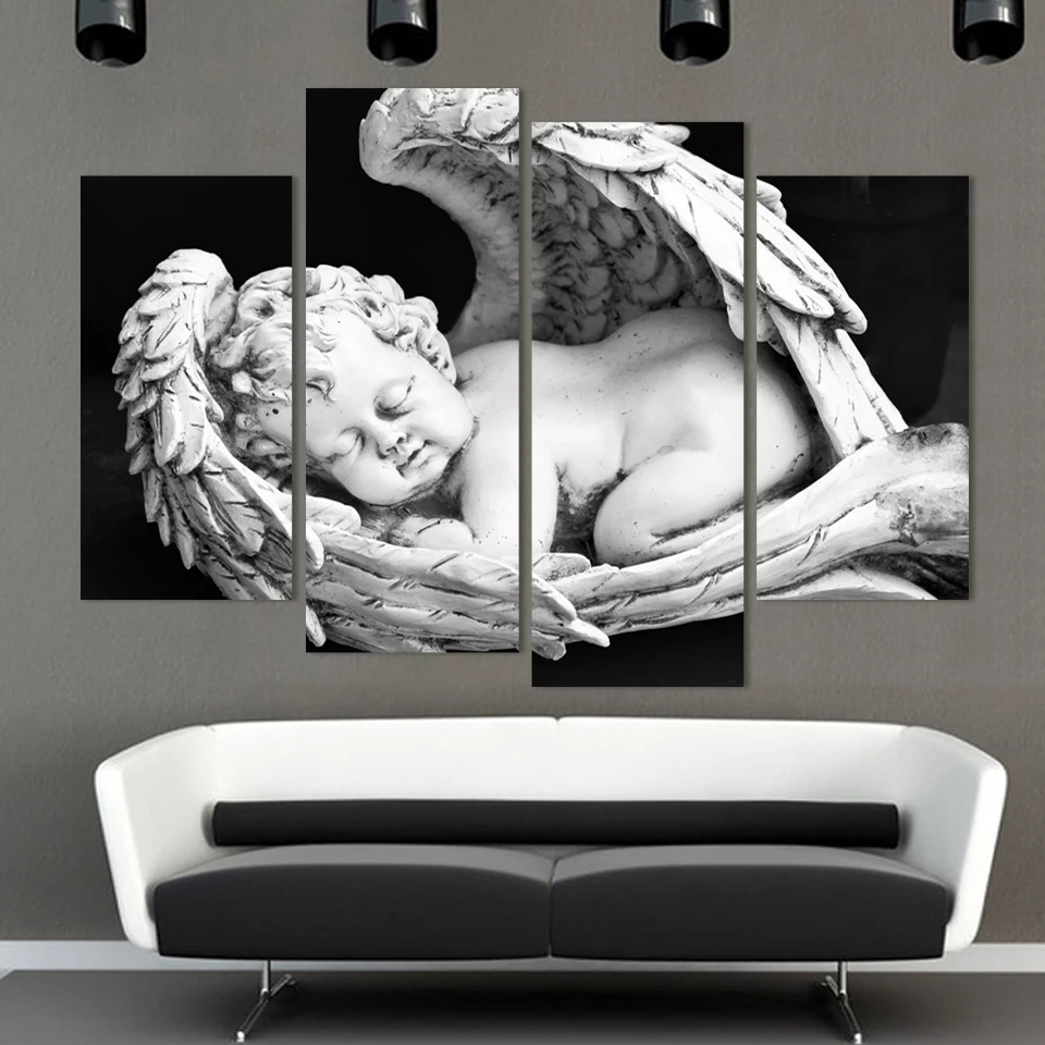 Lienzo moderno para pintura de ángeles blancos y negros europeos, cuadros de pared para niños desnudos para la entrada al salón, figura decorativa para el hogar|kids wall pictures|picture for living roomwall pictures -